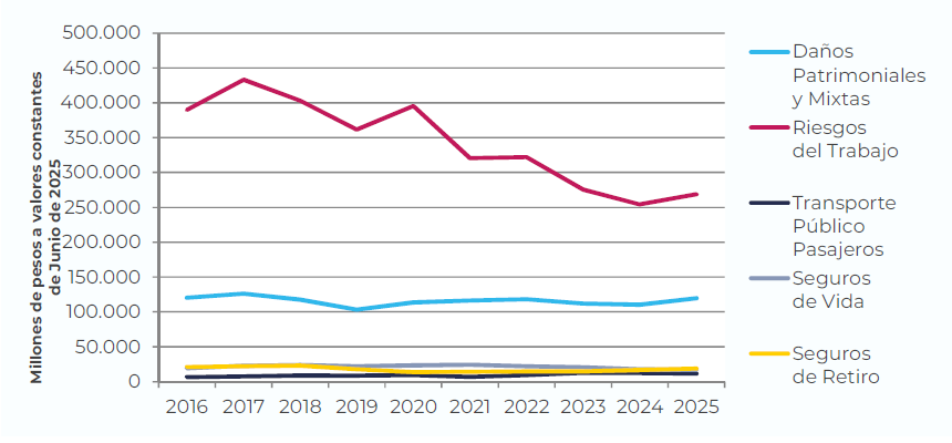 Según la Actividad Principal, las Aseguradoras de Riesgos del Trabajo producen 269.125 millones de pesos por entidad y las Patrimoniales y Mixtas 119.535 millones. Las Entidades de Retiro 18.572 y de Vida 16.638 millones de pesos respectivamente. Por último, las entidades de Transporte Público Pasajeros suman 11.446 millones de pesos.