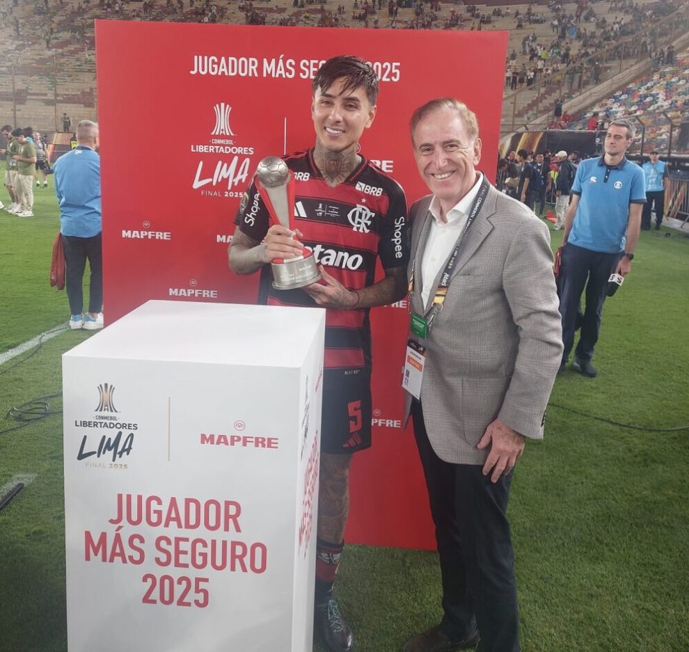 El premio, que por segundo año promueve MAPFRE y la Confederación Sudamericana de Fútbol (CONMEBOL), lo entregó Antonio Huertas, Presidente de MAPFRE, tras la celebración de la Final de la CONMEBOL Libertadores 2025, en el Estadio Monumental “U” de Lima entre los equipos Palmeiras y Flamengo.