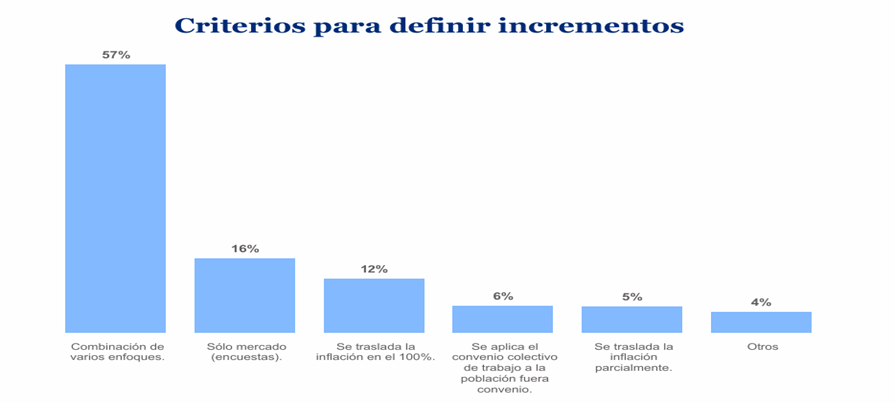 En este contexto, las organizaciones continúan avanzando hacia esquemas de gestión salarial más planificados. El informe muestra que el 57% de las compañías combina múltiples criterios para definir sus incrementos, incluyendo referencias de mercado, inflación esperada y desempeño individual, lo que evidencia una mirada más estratégica en materia de compensaciones.