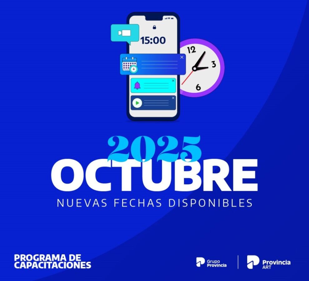 Para consultar el cronograma, pedir más información e inscribirse, los interesados pueden visitar la sección Programa de Capacitaciones del sitio web de Provincia ART o escribir a serviciosdeprevencion@provart.com.ar. Otras vías de comunicación son el 0-800-333-1278, de lunes a viernes de 8 a 20; Facebook y LinkedIn.